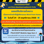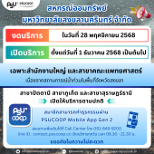 สอ.ม.อ. สำนักงานใหญ่ และสาขาแพทยศาสตร์ เปิดบริการ ตั้งแต่วันที่ 1 ธันว... (ดู : 106)