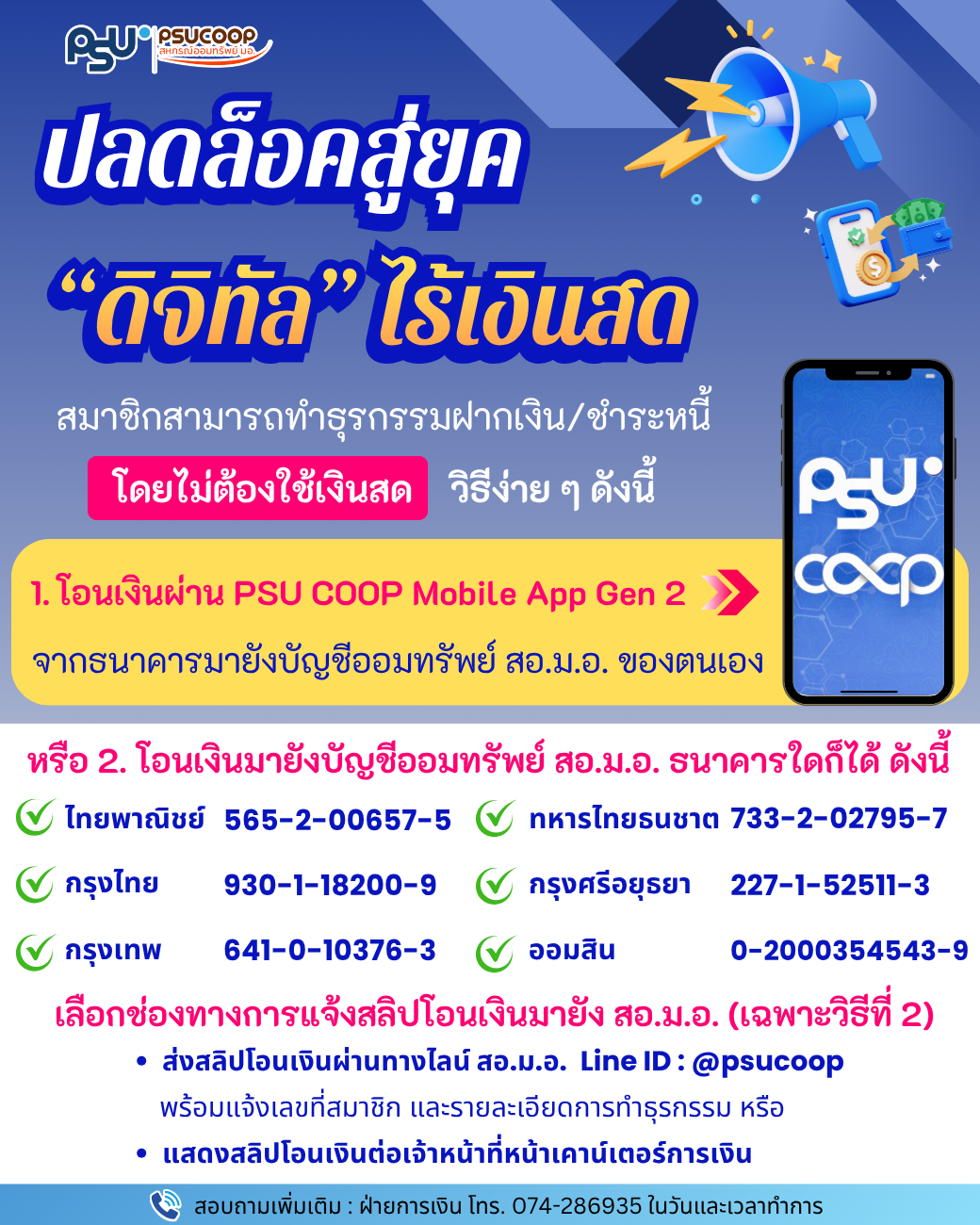 รายชื่อสมาชิกที่ได้รับรางวัลกับบัตรเดบิต PSUCOOP D CARD. ,Uดังนี้