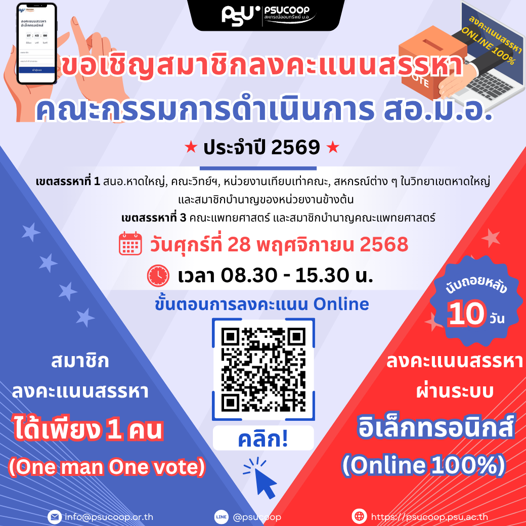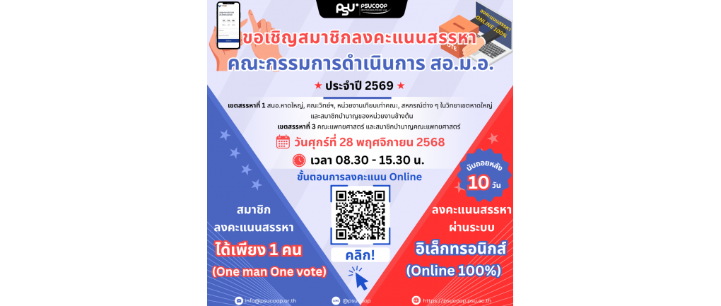 สอ.ม.อ. สำนักงานใหญ่ และสาขาแพทยศาสตร์ เปิดบริการ ตั้งแต่วันที่ 1 ธันวาคม 2568 เป็นต้นไป