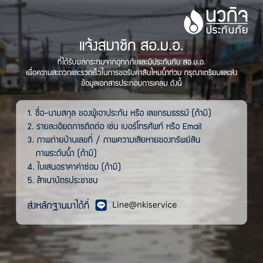 การขอรับค่าสินไหมน้ำท่วม จากบริษัทนวกิจประกันภัย จำกัด (มหาชน)