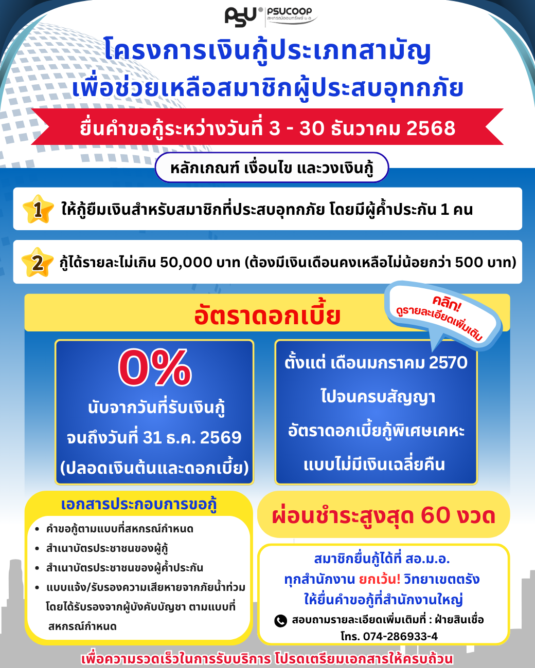 โครงการเงินกู้ประเภทสามัญเพื่อช่วยเหลือสมาชิกผู้ประสบอุทกภัย