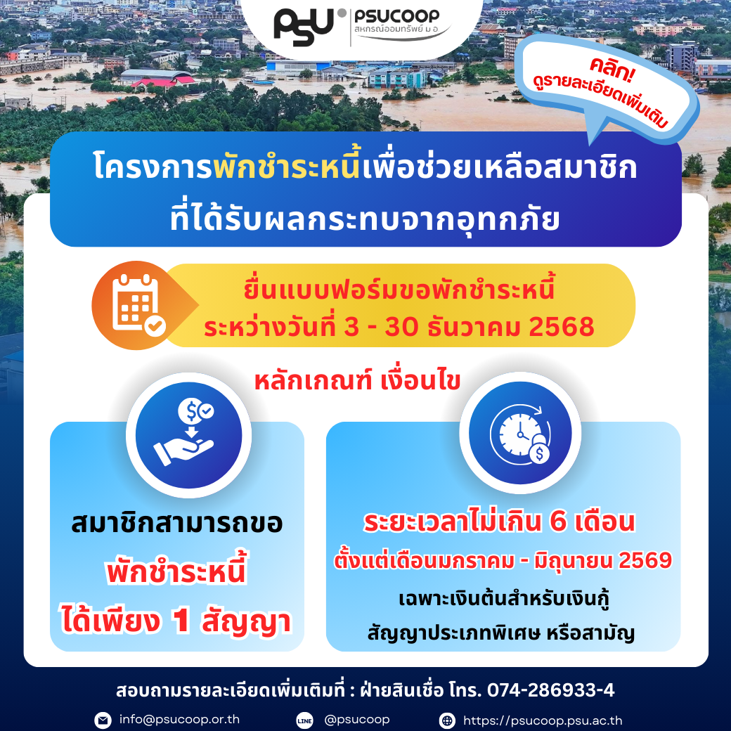 โครงการพักชำระหนี้เพื่อช่วยเหลือสมาชิกที่ได้รับผลกระทบจากอุทกภัย