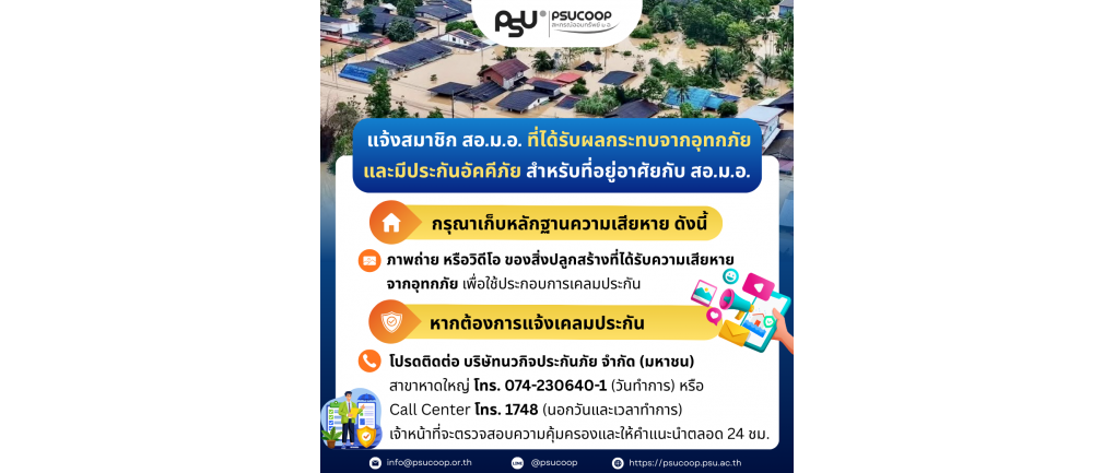 สมาชิกสอ.ม.อ. ที่ได้รับอนุมัติเคลมประกันภัยน้ำท่วม จะดำเนินการโอนเงินเข้าบัญชีประเภทออมทรัพย์ ของสมาชิกภายในไม่เกิน 3 วันทำการ