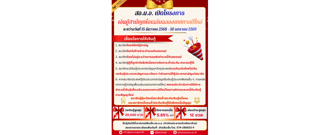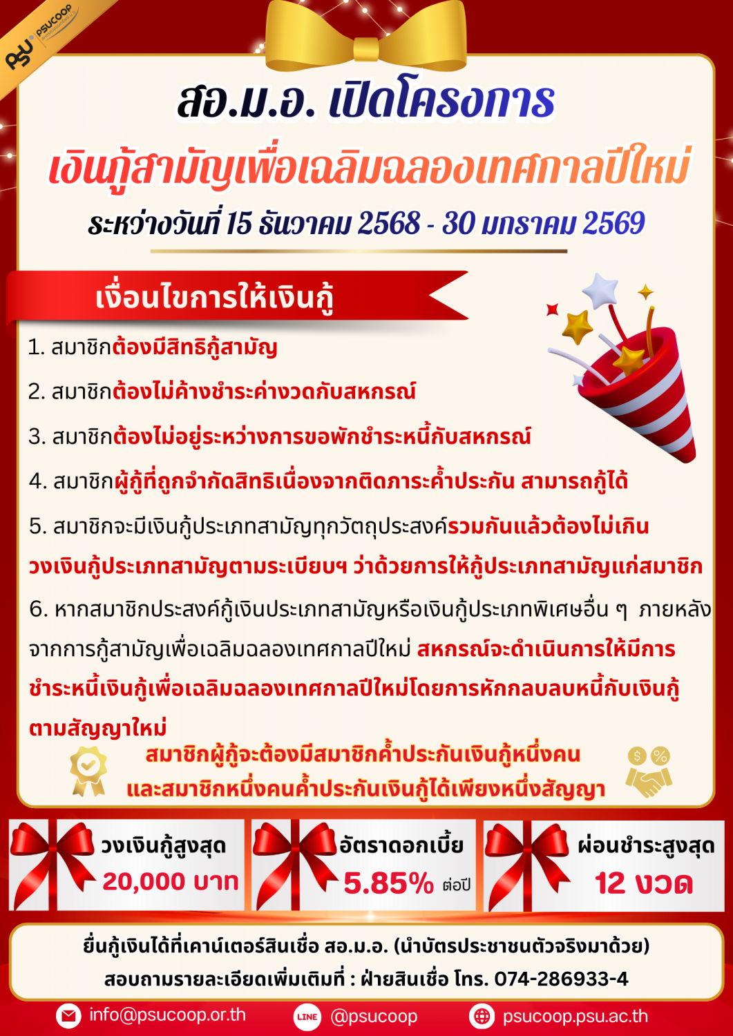 โครงการเงินกู้สามัญเพื่อเฉลิมฉลองเทศกาลปีใหม่ ระหว่างวันที่ 15 ธันวาคม 2568 - 30 มกราคม 2569
