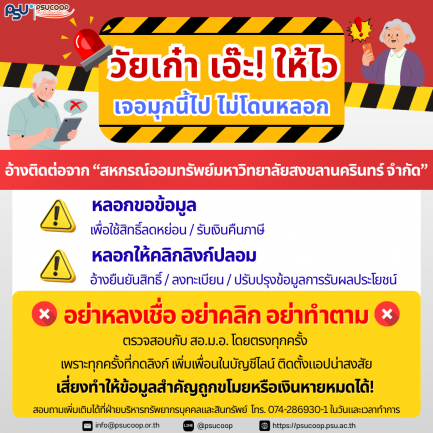 สอ.ม.อ. เตือนภัย โปรดระวังมิจฉาชีพ!!!