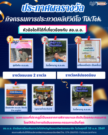 ประกาศผลรางวัลกิจกรรมการประกวดคลิปวิดิโอ TikTok