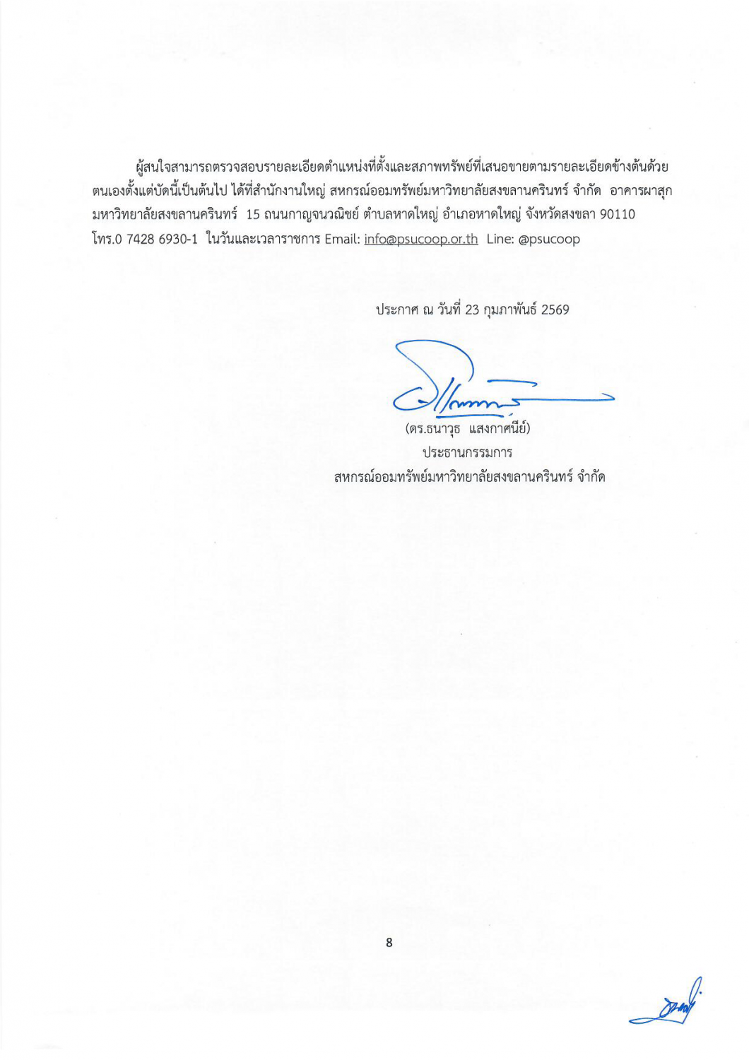 ประกาศ สอ.ม.อ. ที่ 7-2569 เรื่องการขายที่ดินและสิ่งปลูกสร้างสหกรณ์ ครั้งที่ 1 ประจำปี 2569.pdf